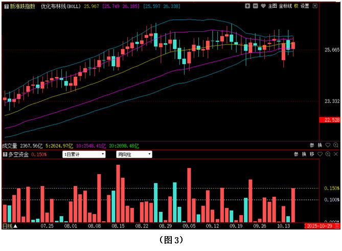 今日两市上涨个股共4333只,其中涨幅超过3%的个股865只,涨幅在9.9%以上的个股95只;下跌个股共950只,其中跌幅超过3%的个股132只,跌幅在9.9%以上的个股9只。图3所示为指南针特有的0Z指数K线图,从图中可以看到,今日0Z指数并未延续昨日的下跌走势,而是收出阳线,且收盘位置再次回升至优化布林中轨上方。可见今日场内多数中小盘个股都出现了上涨,虽然目前0Z指数依然处于自8月26日以来的震荡区间内部,但多方的及时反击说明后市仍有向上选择方向的可能。从下方的多空资金来看,今日0Z指数的多空资金为流入状态,且资金流入量明显超过昨日的资金流出量,可见多方不仅快速化解了空方抛压,而且还有更多场外资金加入到了做多行列。在这种情况下,一旦行情结束盘整,出现向上突破,新一波拉升很可能会随之展开。