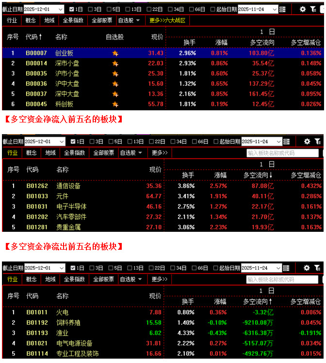 (12月1日午评,北京指南针科技发展股份有限公司提供)