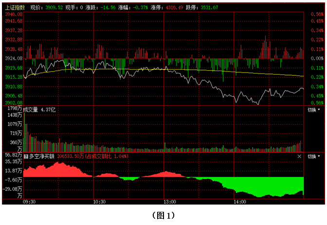 如图1所示,今日早间大盘小幅低开,盘中指数虽有向上反弹动作,但力度很弱,于是市场在3914点至3924点之间展开窄幅震荡整理,午后大盘跌破3914点,并出现一波连续下挫,好在幅度不大,指数在3900点附近获得支撑,并在尾盘略有反弹,最终以3909点收盘。从下方的多空资金来看,早间开盘后,多方率先占据优势,但资金进场的持续性不强,盘中不仅空方频频施压,导致资金几次翻绿,午后更是出现资金连续流出。可见虽然前两天大盘连续上攻,市场短期走势明显好转,但今日多方资金进场并不坚决,导致空方趁机施压,行情出现回落。好在全天抛压并不是很大,只要多方及时反击,后市就仍有继续向上回升的可能。建议大家在控制好仓位的同时,密切关注多空资金的进出情况,以便及时掌握行情变化,并做出相应决策。