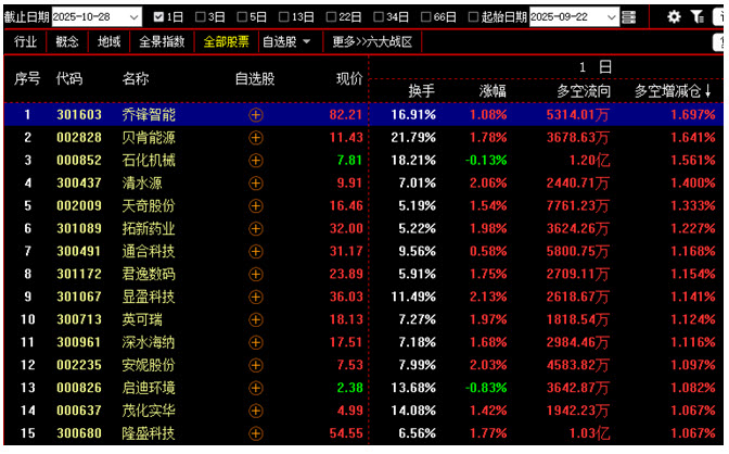 【今日多空资金增仓前200名中涨幅最小的15只个股】