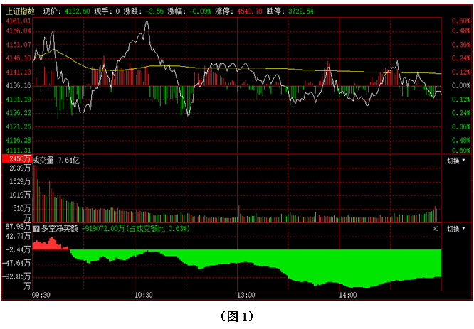 如图1所示,今日早间大盘小幅高开,并试图上攻,盘中指数多次摸至4150点上方,可是始终无法持续向上拉升,导致市场来回反复,午后大盘波动幅度明显减小,指数围绕着4135点窄幅震荡整理,最终以4132点收盘。从下方的多空资金来看,早间开盘后,多方率先占据优势,但资金并未持续进场,于是空方趁势施压,资金不仅由红翻绿,且资金流出力度也变得越来越强。可见今日尽管大盘看似走势平稳,在资金却在逐渐离场。在这种情况下,行情自然难以持续上攻,接下来若空方持续施压,导致场内做多人气进一步下降,则不排除大盘有重回4100点下方的可能。建议大家在控制好仓位的同时,密切关注场内多空资金的进出情况,如果多方后续无力,操作上则需谨慎。